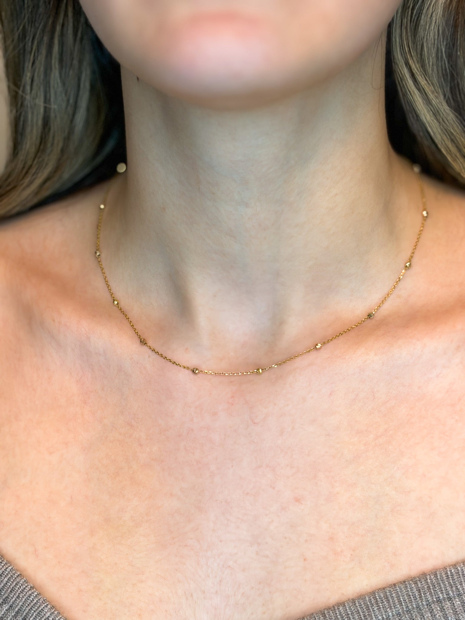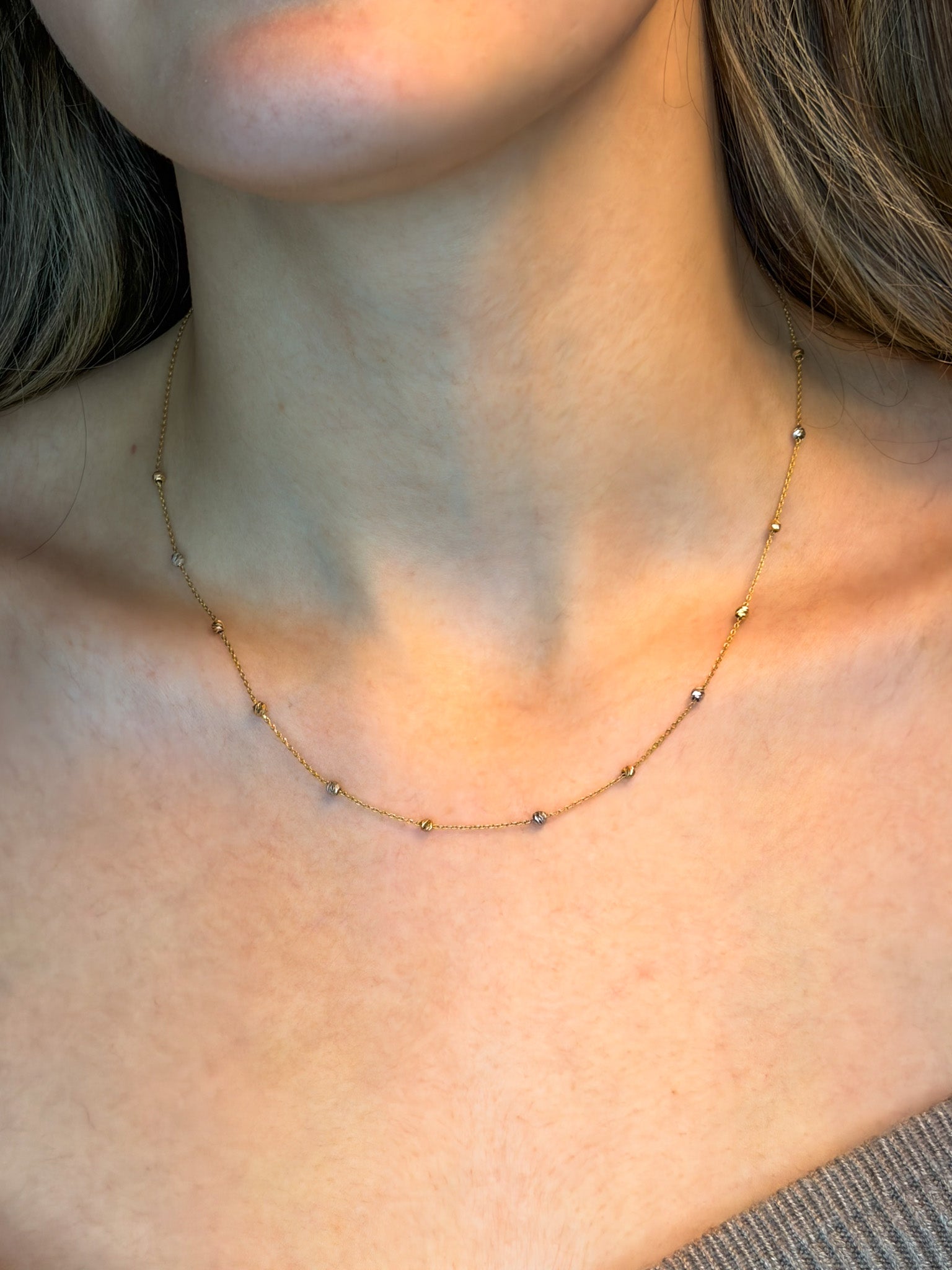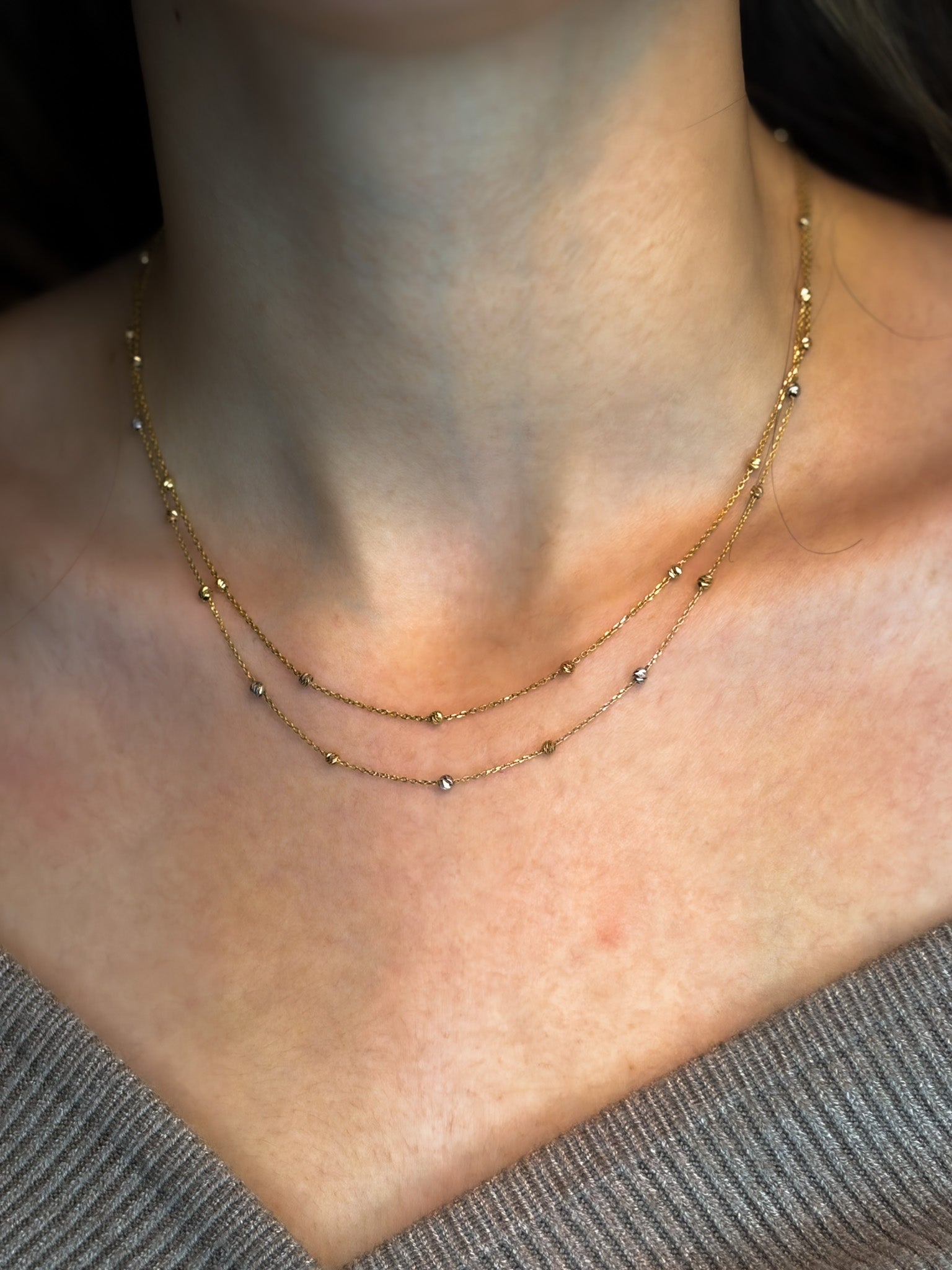 An 18K gold piece that moves like a soft melody around the neck — timeless, graceful, and impossibly pure.