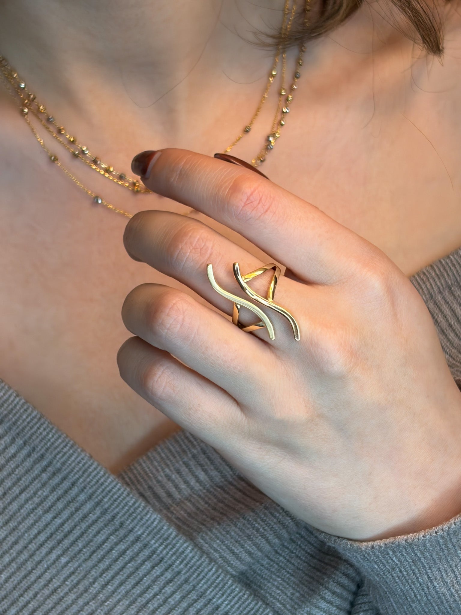 Handmade with passion, sculpted in pure 18K gold — Waves of Grace ring. Its fluid curves capture the gentle motion of elegance, flowing effortlessly around your finger.